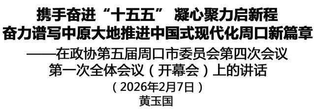 在“十四五”勝利收官、“十五五”開局起步的關鍵時期,政協第五屆周口市委員會第四次會議隆重開幕了。這是全市人民政治生活中的一件大事,是廣納群言、廣集眾智、共謀發(fā)展的一次盛會。在此,我代表中共周口市委,向大會的召開表示熱烈祝賀,向全體政協委員和與會同志致以誠摯問候!