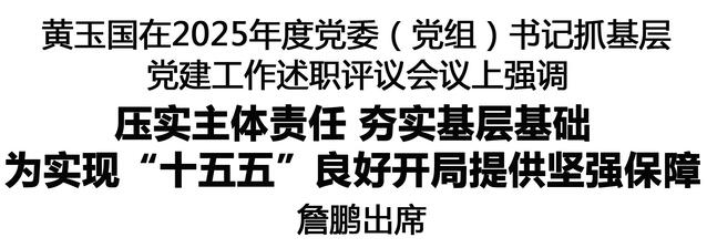 黃玉國強調(diào),要堅定不移提升基層黨建質(zhì)效,鍛造堅強戰(zhàn)斗堡壘。要以政治統(tǒng)領(lǐng)把牢前進方向,深學(xué)細悟習(xí)近平新時代中國特色社會主義思想,深刻領(lǐng)悟“兩個確立”的決定性意義,堅決做到“兩個維護”。要以建強組織夯實基層基礎(chǔ),選優(yōu)配強各級領(lǐng)導(dǎo)班子,深化城市基層黨建,突出抓好新興領(lǐng)域黨建工作,推動各領(lǐng)域基層黨組織全面進步、全面過硬。要以過硬隊伍服務(wù)發(fā)展大局,提升基層干部隊伍履職能力,從嚴把好發(fā)展黨員政治關(guān),注重關(guān)愛基層干部,落實整治形式主義為基層減負長效機制,讓基層干部有更多時間和精力服務(wù)群眾、推動發(fā)展。要以黨建引領(lǐng)提升治理效能,落實“想明白、說明白、干明白”的基本要求,強化鄉(xiāng)鎮(zhèn)(街道)基層社會治理主責(zé)主業(yè),用好治理平臺,優(yōu)化網(wǎng)格設(shè)置,更好凝聚服務(wù)群眾。要以責(zé)任落實確保工作落實,把加強基層黨建工作擺在突出重要位置,層層傳導(dǎo)壓力,層層壓實責(zé)任,形成齊抓共管的工作合力。