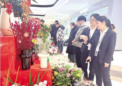 春節(jié)臨近,我市中心城區(qū)各大商超年味漸濃,年宵花專區(qū)成為亮點。蝴蝶蘭、冬青等年宵花爭奇斗艷,造型喜慶的“抱抱桶”備受青睞。市民在采購年貨的間隙,紛紛選購心儀花材,裝點家居、寄托期許。