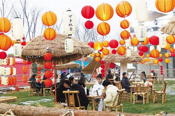 近日,周口首屆永福新春游園會(huì)在引黃調(diào)蓄湖畔啟動(dòng),吸引不少群眾前去看文藝演出、逛文創(chuàng)集市、嘗傳統(tǒng)小吃。圖一為群眾在露營地休息。圖二為群眾乘船游玩。