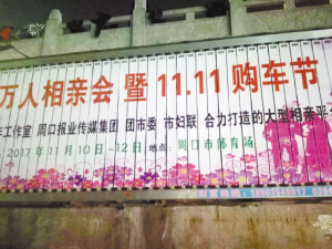 11月12日,由市委組織部、共青團(tuán)周口市委、市婦聯(lián)、周口報(bào)業(yè)傳媒集團(tuán)主辦的周口首屆大型相親會(huì)暨雙11購(gòu)車節(jié)圓滿落幕?!?a href="http://www.indiascents.com/content/2017-11/15/content_591402.htm" target="_blank" >[詳細(xì)]