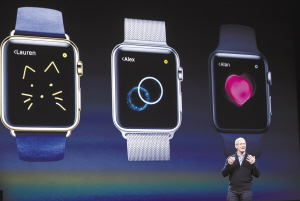 3月9日,在美國(guó)加州舊金山,蘋(píng)果公司首席執(zhí)行官蒂姆·庫(kù)克在發(fā)布會(huì)上介紹Apple Watch。