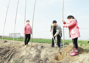 左圖 昨日,扶溝縣大李莊鄉(xiāng)高河沿村的群眾正在植樹。植樹節(jié)來臨之際,該縣各鄉(xiāng)鎮(zhèn)切實(shí)抓好以查漏補(bǔ)缺為主的植樹造林和美麗鄉(xiāng)村綠化工作,扎實(shí)有序推進(jìn)生態(tài)縣建設(shè)。(黃金峰 周運(yùn)動(dòng) 攝)