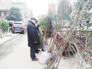 上圖 昨日上午,一位市民正在挑選果樹。又是一年春來到,眾多市民紛紛趁早春時(shí)節(jié)種植樹木。