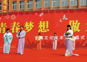 該校把特色教育作為發(fā)展的名片,推出“一班一品一特色”活動(dòng)。學(xué)校建立以班級(jí)為單位的社團(tuán)組織,并細(xì)分為體育類、舞蹈類、樂(lè)器類、美術(shù)類四大類別,共70個(gè)社團(tuán)。比如:美工社團(tuán)制作漢服進(jìn)行表演,每一次都讓在場(chǎng)的觀眾潸然淚下,為自己是一個(gè)漢唐中華子孫而驕傲,為著漢唐服裝而自豪。學(xué)校出版了《求真大課堂》《走在成長(zhǎng)的路上》《花季無(wú)悔》《中學(xué)生科技創(chuàng)作》《班主任德育思想錄》《國(guó)學(xué)之蘊(yùn)》《家和萬(wàn)事興》《共創(chuàng)一個(gè)夢(mèng) 和韻文昌之家校共建》《“文昌杯”文明我先行 共筑一個(gè)夢(mèng)》主題征文作文選等校本教材。為豐富校園文化生活,學(xué)校邀請(qǐng)中國(guó)政法大學(xué)的霍登科,歷史文化學(xué)者王少清,青少年心理教育專家張海選、萬(wàn)禮彬,周口市中心醫(yī)院婦產(chǎn)科主任楊莉,河南國(guó)學(xué)院的施柳貞、王福琪、楊茹梅以及國(guó)內(nèi)外優(yōu)秀大學(xué)生對(duì)學(xué)生進(jìn)行國(guó)學(xué)誦讀和教育、演講比賽、法制教育、夢(mèng)想目標(biāo)教育、青春期心理和生理教育等活動(dòng)。在該校首屆“做大成教育 展青春夢(mèng)想”文化藝術(shù)節(jié)活動(dòng)中,有一項(xiàng)活動(dòng)叫珍藏十年“心愿瓶”,當(dāng)滿載學(xué)生夢(mèng)想的心愿瓶準(zhǔn)備珍藏時(shí),晴天出現(xiàn)了彩虹,讓在場(chǎng)的領(lǐng)導(dǎo)、家長(zhǎng)、學(xué)生很驚嘆,說(shuō)文昌中學(xué)的學(xué)生目標(biāo)遠(yuǎn)大,定有大才出現(xiàn)。這些有意義的活動(dòng)對(duì)廣大未成年人的身心健康起到了很好的促進(jìn)作用。