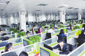 對(duì)口幫扶沈丘縣的央企大唐電信集團(tuán),經(jīng)過(guò)半年來(lái)緊鑼密鼓的建設(shè),大唐融合(河南)信息服務(wù)有限公司暨沈丘云計(jì)算呼叫中心第一期已于今年4月份正式運(yùn)營(yíng)。目前,第一期300名員工已投身呼叫中心客服行業(yè)。圖為第一批員工昨日正在緊張工作。(記者 韋偉 通訊員 王祥宇 攝)