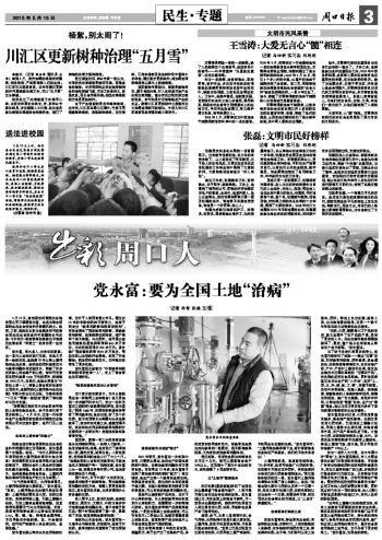 作為一名市人大代表,在今年周口市“兩會”上,黨永富還建議,市人大要監(jiān)督農業(yè)部門采取切實有效措施,盡快推廣有突出效果的肥料促進劑肥料減量技術,并加大宣傳和推廣的力度。多施肥多打糧食的時代已經過去,只有耕地不受污染才能多打糧食,才能可持續(xù)生產糧食。要把肥料促進劑肥料減量技術推廣應用工作納入政府重要議事日程,同時還應把它作為一項環(huán)保政策,納入《周口市耕地質量提升規(guī)劃》之中,并列入政府的財政預算。