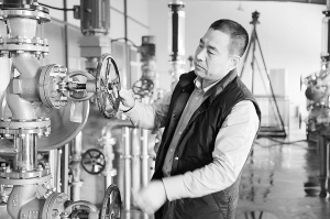 黨永富在車間檢查設備