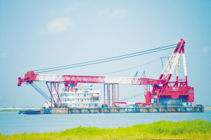 中鐵大橋局千噸起重船抵達(dá)孟加拉國 這是5月20日在孟加拉國帕德瑪大橋項(xiàng)目施工區(qū)域拍攝的中鐵大橋局千噸起重船。經(jīng)歷一個(gè)多月的海上航行,從青島起航的中鐵大橋局“瑞航05”起重船于5月19日抵達(dá)孟加拉國帕德瑪大橋施工區(qū),為大橋建設(shè)提供重要保障。新華社發(fā)