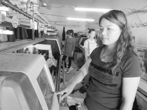 5月24日,商水縣巴村鎮(zhèn)上城村返鄉(xiāng)農(nóng)民工黨強(qiáng)嗆和工人一起操作電子編織機(jī)。黨強(qiáng)嗆返鄉(xiāng)后創(chuàng)建了毛織廠,吸收村里30多位村民進(jìn)廠工作。近兩年來,該縣通過實施“回歸工程”,使3000多名“金鳳凰”歸巢興業(yè),并為6萬名多農(nóng)村剩余勞力提供了就業(yè)崗位。(喬連軍 攝)