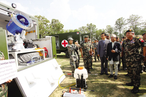 尼泊爾軍方25日在位于加德滿都的軍隊醫(yī)院大草坪舉行隆重交接儀式,感謝中國把兩套總價值5900萬元人民幣的野戰(zhàn)醫(yī)院設備贈予尼軍。