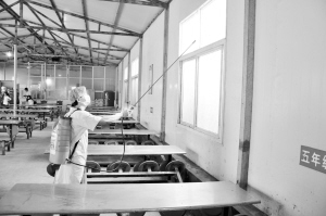 “這個(gè)藥品叫順氯·殘殺威,對(duì)消殺蚊蠅有很好效果,作用可以持續(xù)3個(gè)月左右。這會(huì)兒食堂里有刺鼻的味道,但十幾分鐘后基本上就聞不到了。”市疾控中心消毒科科長(zhǎng)胡偉說,這次用于消殺蚊蠅的都是高效、低毒的藥物,對(duì)人體危害不大。如果學(xué)生不小心觸摸到了,只要用清水洗掉即可,不用過于擔(dān)心。