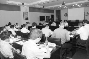 5月14日晚,周口農(nóng)行組織召開黨委中心組學(xué)習(xí)(擴(kuò)大)會(huì)議,集體學(xué)習(xí)《金融互聯(lián)網(wǎng)知識(shí)講座》、《黨建知識(shí)及上級(jí)行黨建工作有關(guān)要求》等內(nèi)容。圖為學(xué)習(xí)現(xiàn)場(chǎng)。(彭濤 攝)