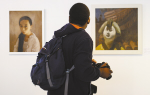 “交錯(cuò)與融合”美術(shù)作品展在南非開幕 6月6日,在南非約翰內(nèi)斯堡舉行的“交錯(cuò)與融合”美術(shù)作品展上,一名參觀者欣賞華人藝術(shù)家張銳的油畫作品。當(dāng)日,作為“南非中國年”活動(dòng)的一部分,由華人藝術(shù)家張銳與南非11名畫家共同參與的“交錯(cuò)與融合”美術(shù)作品展舉行。新華社發(fā)