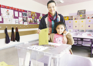 土耳其舉行議會(huì)選舉 6月7日,在土耳其首都安卡拉一個(gè)投票站,一個(gè)小女孩幫媽媽投票。土耳其議會(huì)選舉當(dāng)日開始投票。執(zhí)政的正義與發(fā)展黨、主要反對黨共和人民黨、民族行動(dòng)黨和親庫爾德的人民民主黨在內(nèi)的20個(gè)政黨參加競選,角逐550個(gè)議會(huì)席位。新華社發(fā)