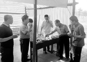 7:20:一位女村民騎著自行車急匆匆來(lái)到行政村“三夏”安全防火指揮部找村干部,二話沒(méi)說(shuō)就大聲嚷道:“恁干部管不管,俺家的承包地讓水廠的水管沖毀了?!边@位村民是來(lái)反映自來(lái)水廠的主管道因爆裂沖毀了承包地。