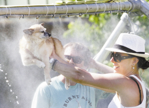 熱浪襲擊溫哥華      6月27日, 在加拿大溫哥華, 一名女子利用街頭的噴水設(shè)施為寵物狗降溫。據(jù)加拿大環(huán)境部門(mén)檢測(cè),不列顛哥倫比亞省沿岸地區(qū)當(dāng)日最高氣溫達(dá)攝氏三十度,內(nèi)陸地區(qū)升至四十度。溫哥華市政府已發(fā)出高溫預(yù)警,呼吁民眾外出時(shí)注意身體狀況,謹(jǐn)防中暑。新華社發(fā)