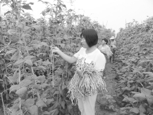 7月4日,商水縣舒莊鄉(xiāng)一農(nóng)民種植專業(yè)合作社的社員們正在摘豆角。該合作社今年種植麥瓜套、蒜瓜套和豆角120多畝,畝均收入在4000元以上。近年來,舒莊鄉(xiāng)調(diào)整產(chǎn)業(yè)結(jié)構(gòu),拓寬農(nóng)民增收渠道,推進(jìn)現(xiàn)代農(nóng)業(yè)發(fā)展,健全服務(wù)體系,創(chuàng)建了瓜菜生產(chǎn)基地、良種繁育基地、苗木生產(chǎn)基地等,開辟了一條農(nóng)業(yè)增收、農(nóng)民致富的新途徑。