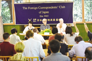 宮崎駿敦促安倍承認(rèn)日本曾對華發(fā)動侵略戰(zhàn)爭 7月13日,在日本東京外國記者俱樂部,奧斯卡終身成就獎得主、日本著名動畫大師宮崎駿(中)出席記者會并發(fā)表講話。當(dāng)日,宮崎駿在記者會上敦促日本首相安倍晉三在其戰(zhàn)后70周年談話中承認(rèn)日本曾對中國發(fā)動侵略戰(zhàn)爭,并對由此給中國人民造成的巨大苦難進(jìn)行痛徹反省。 新華社發(fā)