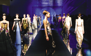 7月13日,在意大利米蘭世博會南京周閉幕時裝秀上,模特展示中國設(shè)計師勞倫斯·許的作品。當(dāng)日,中國高級定制設(shè)計師勞倫斯·許的云錦時裝秀在意大利米蘭世博會南京周上演,展示了37套由云錦面料制成的高級定制禮服。