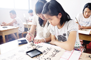 書畫相輔相成 為弘揚“書畫同源”的中國傳統(tǒng)藝術,本中心常年班采取書畫相輔相成的教學方法,毛筆與硬筆相結合、書法與繪畫教學交替進行,以求事半功倍的教學效果。