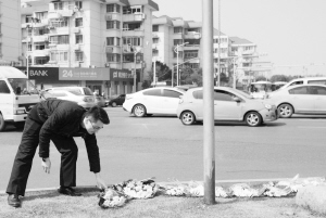 3月12日,一名交警下班后來(lái)到茆盛泉執(zhí)法時(shí)不幸殉職的路口獻(xiàn)花。