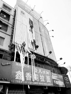 4月9日上午,在周口市區(qū)七一路與大慶路交叉口,兩名工人忙著整修廣告牌,他們“攀附”在墻上的身影,如同電影里的“蜘蛛俠”,讓過往市民無不敬畏勞動者的辛勞與偉大。晚報記者  張志新  攝